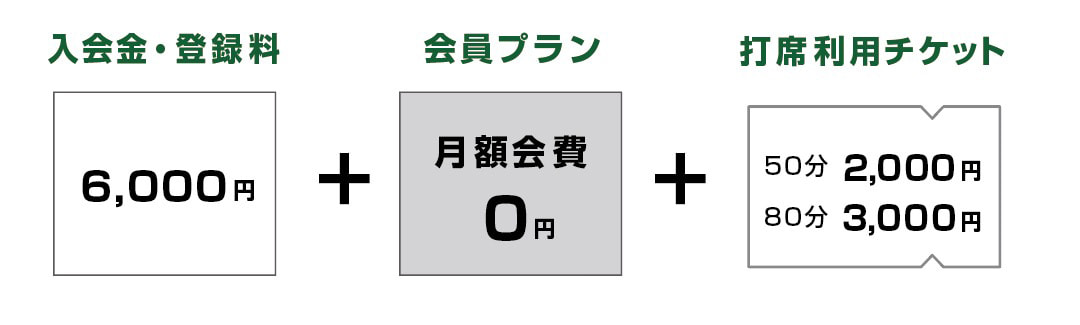 お手頃な月会費と打席利用料でご利用できます(初回のみ入会金が必要)。