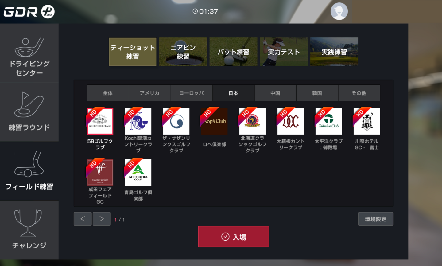 「各クラブごと」「グリーン狙い、池越え、谷越えなどの様々なシチュエーション」で練習可能。苦手ショットの克服に最適です。 練習用のコースも搭載で様々な練習が行えます。