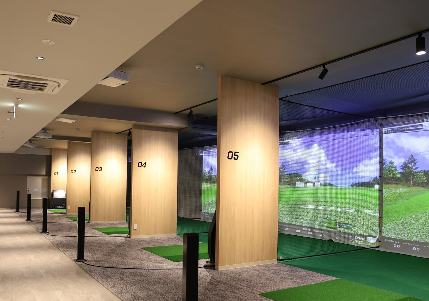 ラウンジのような雰囲気の施設は、冷暖房完備で極寒、猛暑でも快適な練習環境を提供いたします。